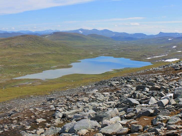 Et tilbakeblikk mot Fremstvatnet, på vei oppover fjellsida.