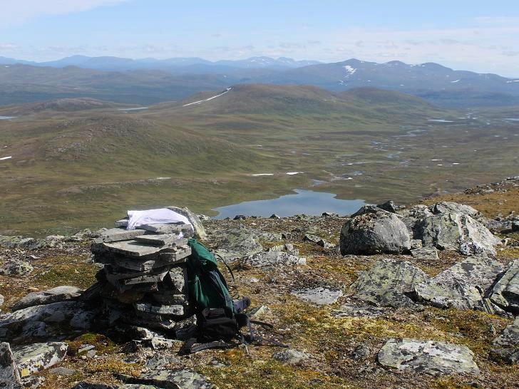 Etter inntak av fast og flytende føde, i form av havrekjeks og fjellvann, var det på tide å fortsette toppraidet. Neste post på programmet var ingen ringere enn Rainesklumpen - en av det østlige Børgefjellets høyeste fjelltopper på 1450 moh. Jeg hadde bestemt meg for å plukke med meg denne, da jeg uansett måtte passere like oppunder toppen på veien videre. På Rainesklumpen hadde jeg vært tidligere, men det var hele 16 år siden, så det var på tide med en ny bestigning.