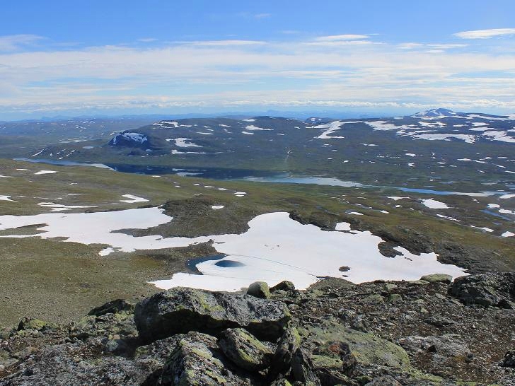 Da jeg nærmet meg den østlige toppen av Rainesfjellet ble jeg noe usikker på om riksrøysa faktisk befant seg på den høyeste toppen, da det var to høydepunkter å velge mellom. Jeg kunne dessuten ikke se noen røys. Dermed "måtte" jeg først innom den sørlige toppen. Det angret jeg ikke på, for herfra hadde jeg et flott skue ned mot Ranseren. Deretter satte jeg kursen mot den nordlige toppen, der riksrøys 205A dukket opp som antatt.