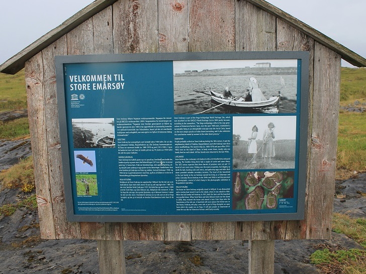 Kun et kvarter etter avgang klappet vi til kai og ble hilst velkommen av vertskapet, Turid Næss og Gisle Ebbesen, som er drivere av Vega kystgård, Store Emårsøy. Her har paret kjøpt og restaurert en gammel husmannsplass, som for noen år siden ble tilgjengelig for besøkende, gjennom arrangerte båtturer med dertil hørende guiding. Hensikten er å vise fiskerbondens liv og levnet fra 1800-tallet og fram til vår tid. Som de øvrige øyene i Vega-skjærgården, er også dette stedet en del av verdensarvområdet.