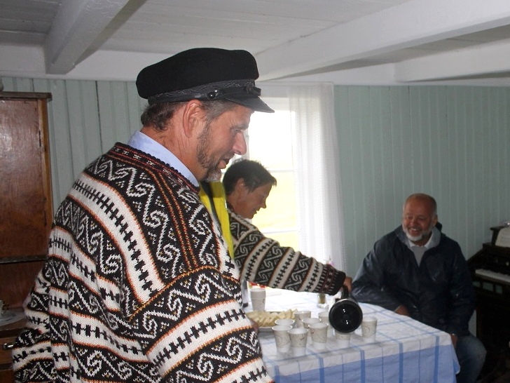 Ute regnet det, og da det smalt til med noen heftige tordenskrall, satte det bare en ekstra spiss på opplevelsen. Inne i stua brant det godt i vedovnen, og tørrfisken som gikk på rundgang blant deltakerne falt tydeligvis i smak hos de fleste. Apropos vedfyring; det har aldri vært utbredt å skjære torv til brensel, hverken på Emårsøy eller på naboøyene, slik som tilfellet var en del andre steder langs kysten. Derimot var det vanlig å hente både fyringsved og annet trevirke inne i fjordene.