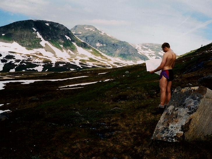 Været var det imidlertid ingenting å si på. Sommervarmen hadde virkelig festet grepet, og vi gikk i shorts og bar overkropp så å si hele veien. Rett og slett en strålende dag i fjellheimen!