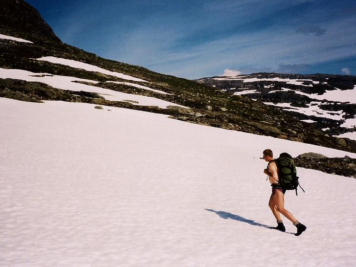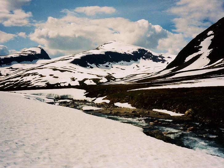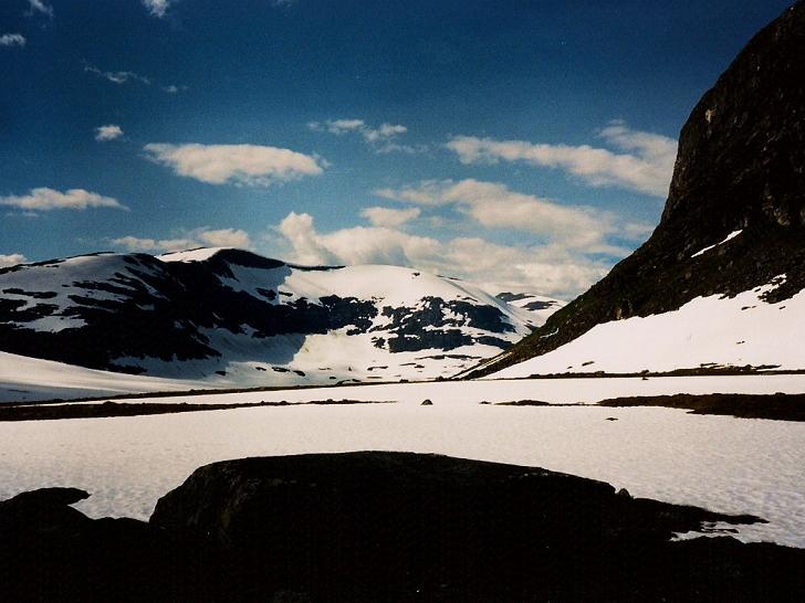 Allerede fra begynnelsen av hadde vi på følelsen at vi ville få føling med betydelige mengder snø innover, ettersom fjellsidene var bemerkelsesverdig hvite – selv midt i juli.