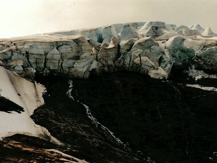 Den store og svært oppsprukne brefronten som var å se ovenfor Mørkbekktjønna er i dag borte.