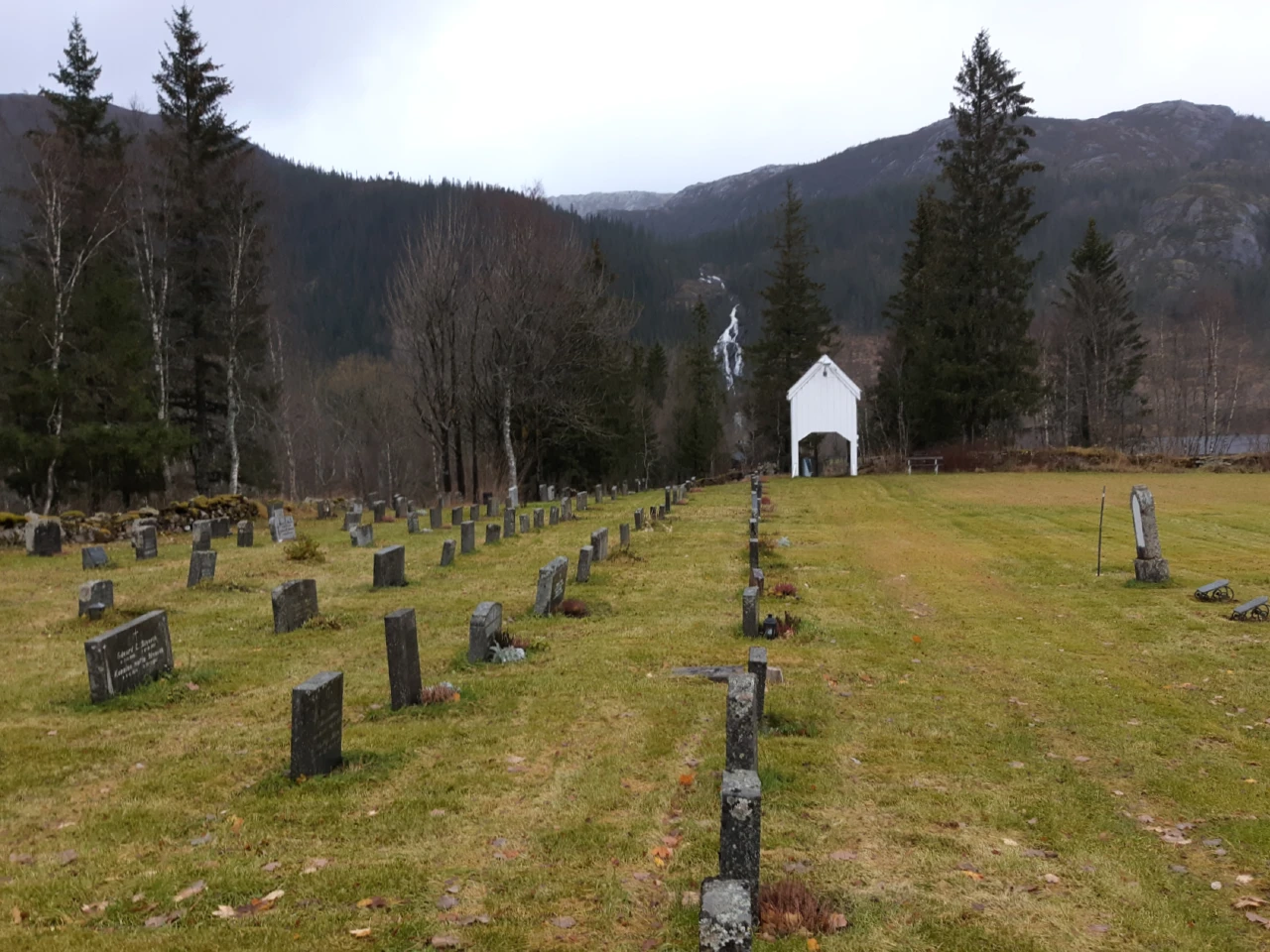 Fra gravlunden høres suset fra strie bekker og elver på alle kanter.