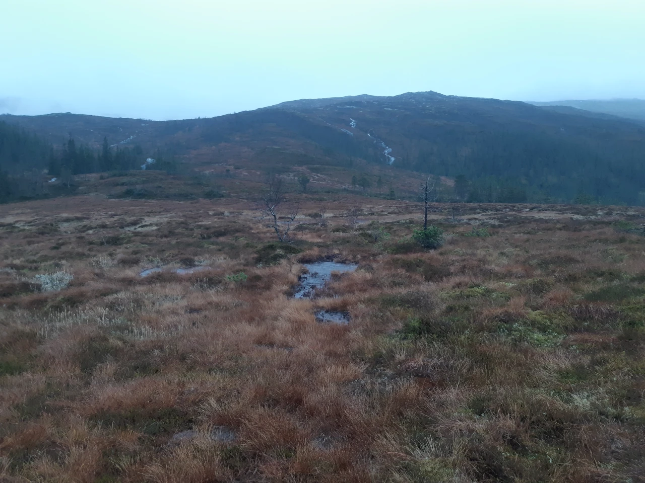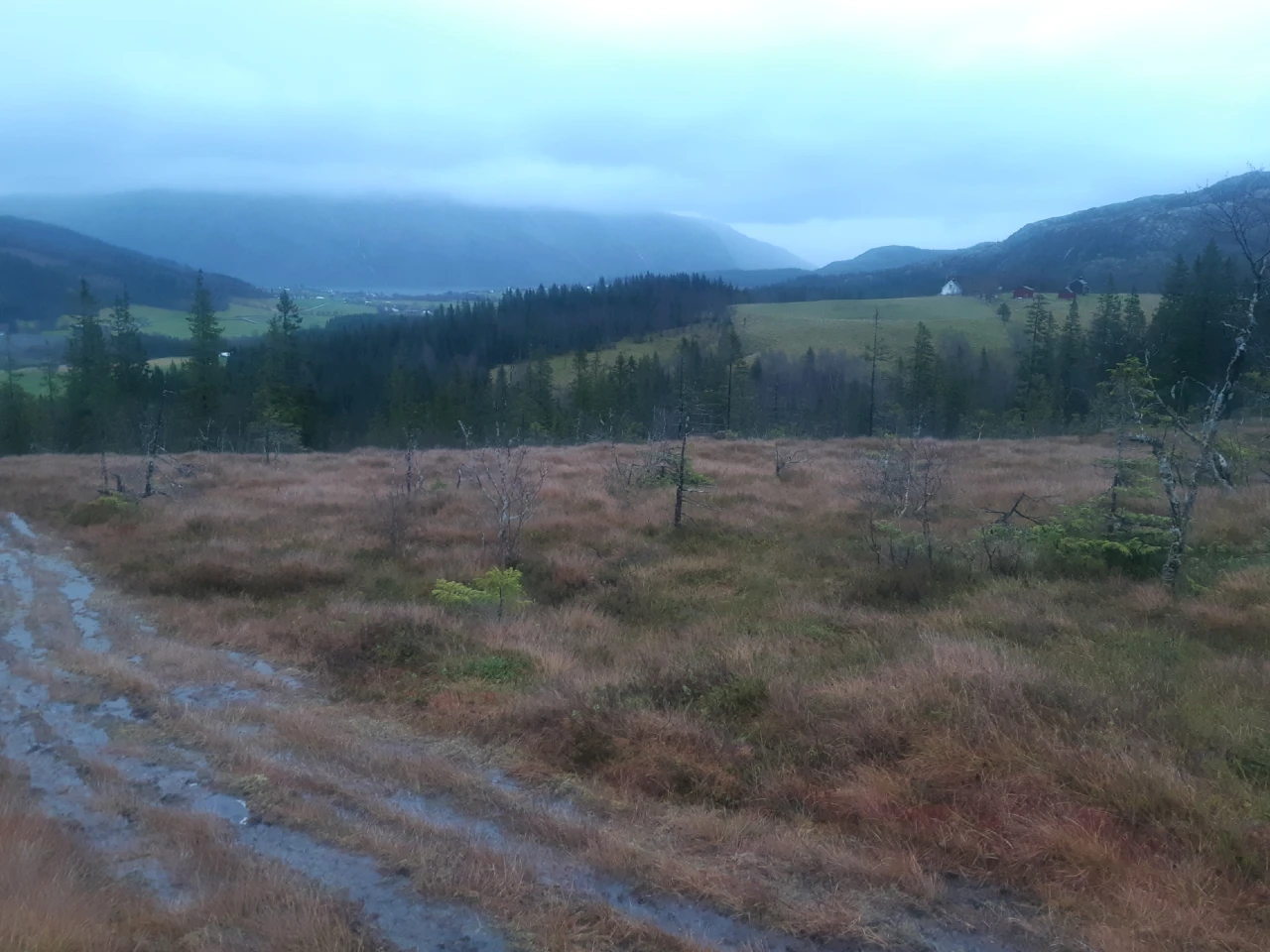 «Stien» var i realiteten noen fryktelig blaute ATV-spor som det rant vann i. Deretter bar det over ei vasstrukken myr inn mot fjellfoten, og til slutt et stykke oppover ei skogbevokst li. Noen hule så jeg ikke snurten av, uten at det påkalte noen skuffelse. Makjenhøla skal visst være såpass spesiell at den fortjener en egen dedikert tur med litt bedre forberedelser, research – og tid. Åpningspartiet er etter sigende noe trangt og bratt, men vel nede i hula åpner det seg visst nokså store rom.